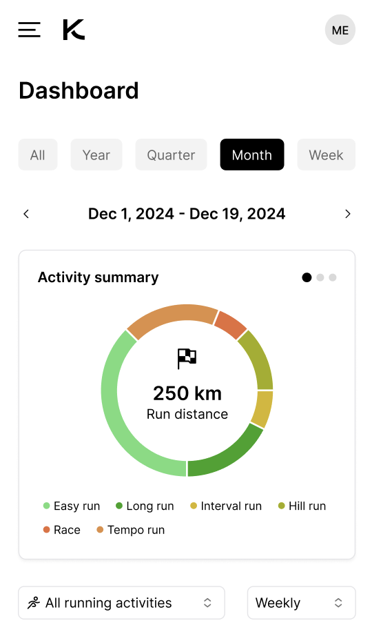 We’ve revamped the total activity bar into a brand new Activity summary on top of the Dashboard view to offer a faster way to track your training progress 🎯